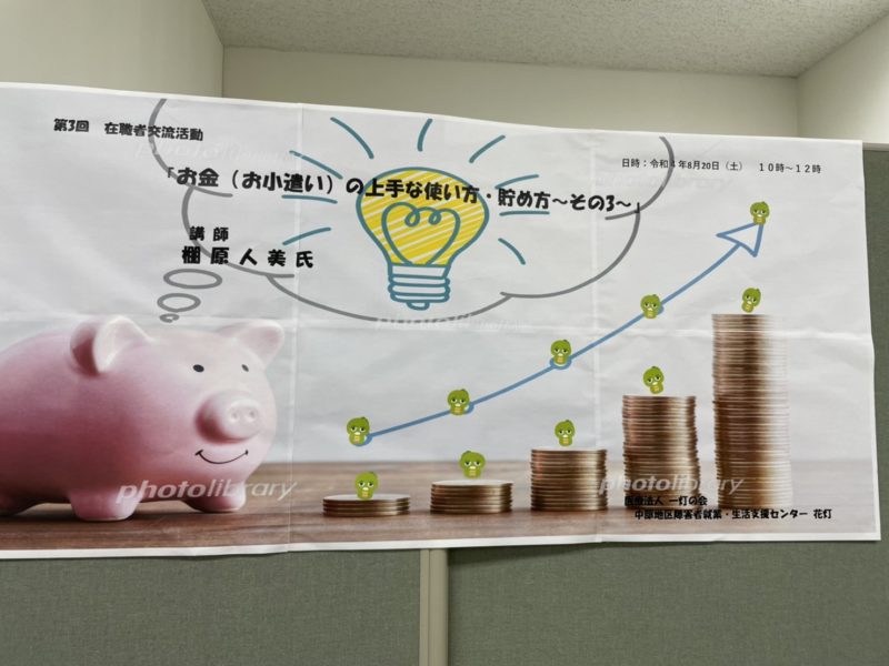 六月から八月まで全3回のお金の講座の依頼が中部地区障がい者就業・生活支援センター花灯さんからありましてやってきました。